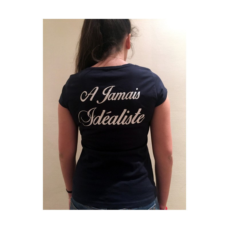 T-shirt Femme Bleu Marine recto/verso (logo IM devant et A Jamais Idéaliste derrière)